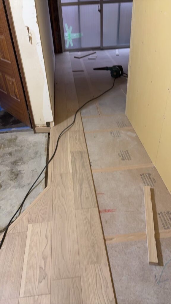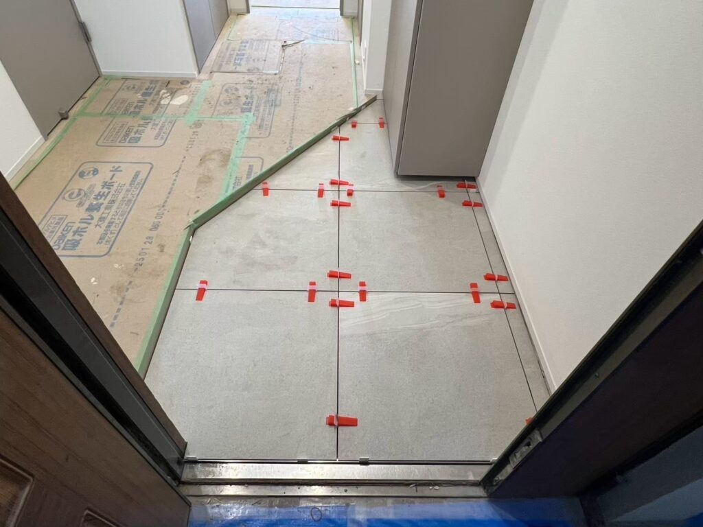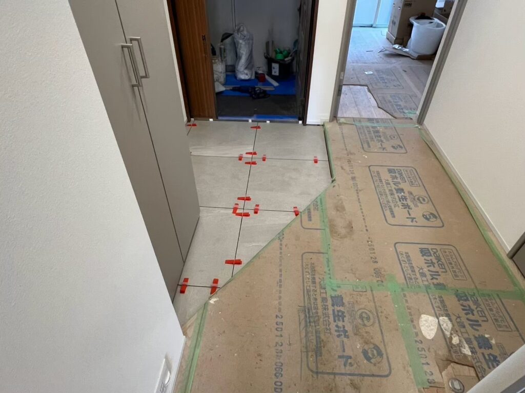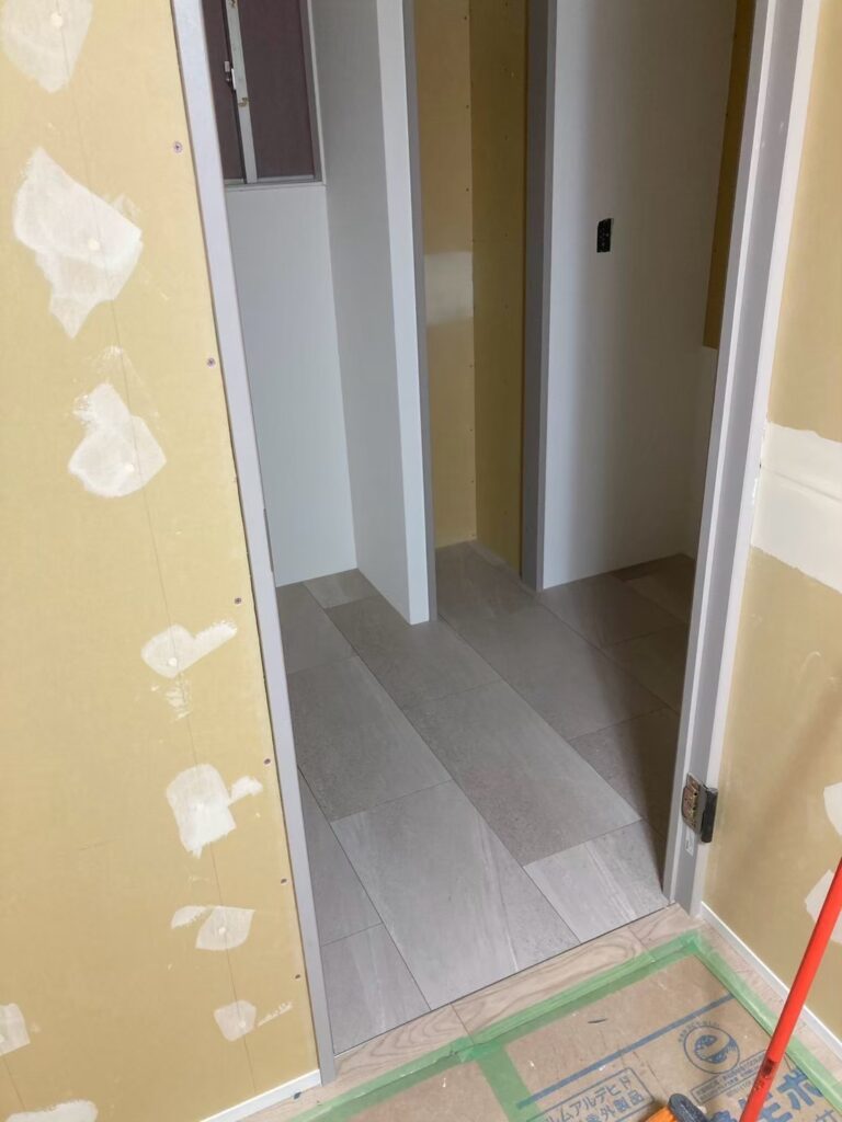 現地はどんどんと内装の仕上げ工事が進んでおります。床にフローリングを貼ったり、タイルを貼ったり、壁にクロスを貼ったり完成形に近づいてきております。