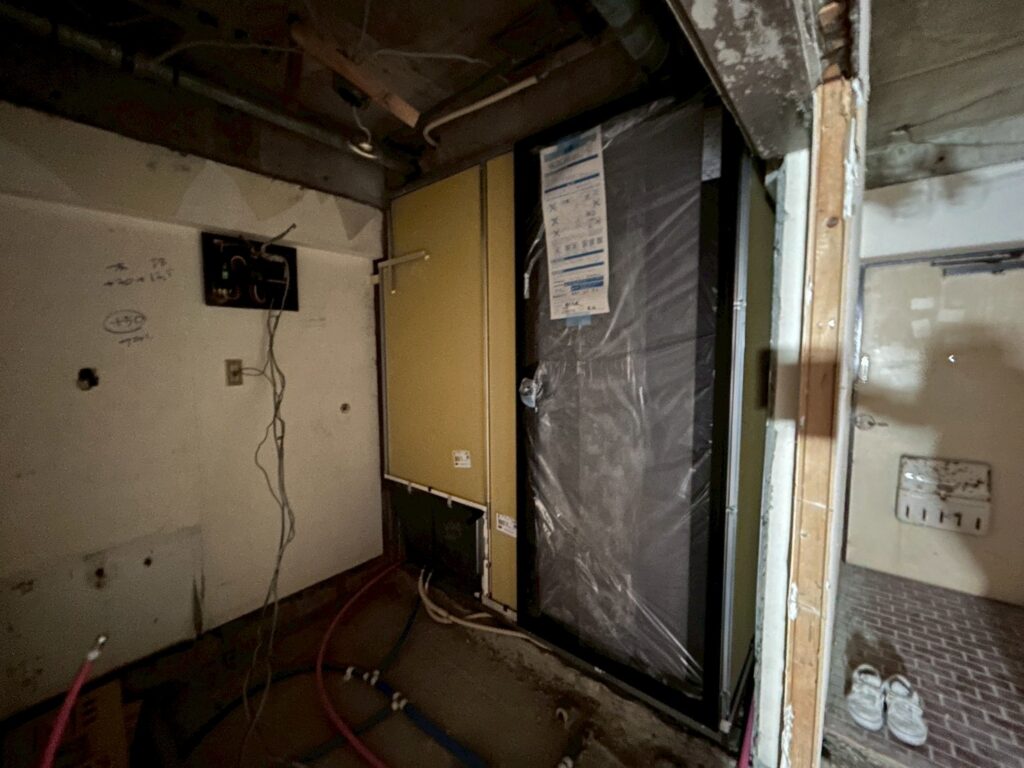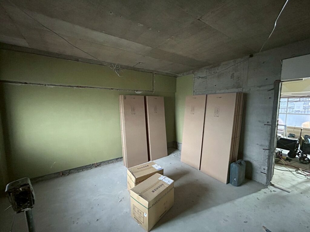 内部はきれいに解体されて、なにもありません。※工事中の養生もマンション内の住人様に迷惑をかけないように、きれいに丁寧に行わないといけません。