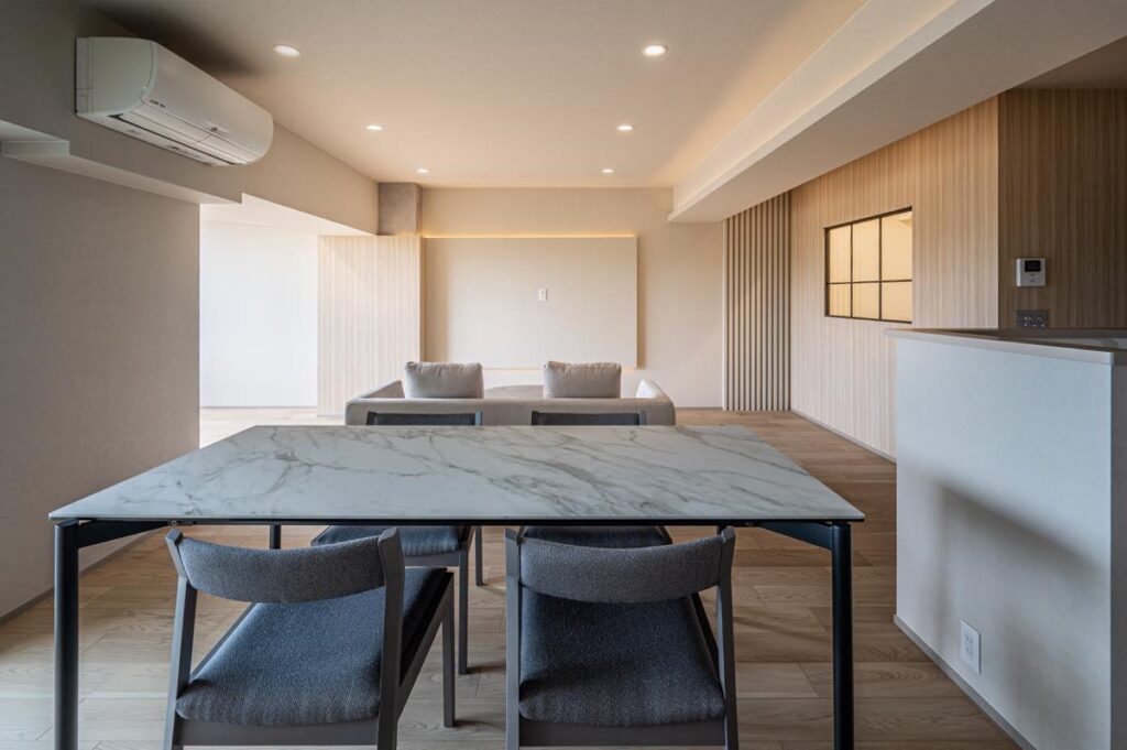 築年数を経た建物特有の課題であった、北側の湿気と冷え込み。私たちはまず、住まいをスケルトン状態(構造体)まで解体し、内部を一度リセットすることから始めました。 断熱材の充填や給排水管の全面更新、さらには窓周りの環境改善など、目に見えない「基本性能」を徹底的に強化。古いマンションにありがちな冬の寒さや結露の不安を払拭し、一年中健やかに暮らせる土台を築きました。