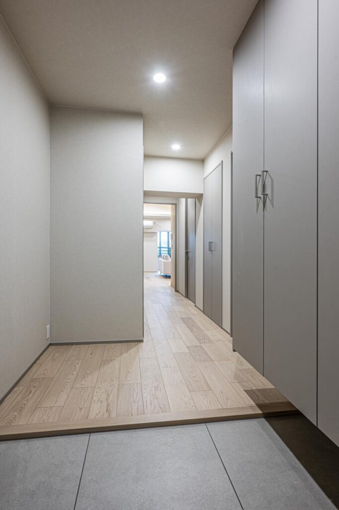 かつては窮屈さを感じさせていた玄関は、大幅にサイズアップ。 一歩足を踏み入れた瞬間に、外の喧騒を忘れさせてくれるような、ゆとりあるエントランスへと生まれ変わりました。帰宅するたびにホッと胸をなでおろす、そんな心のゆとりをデザインしています。